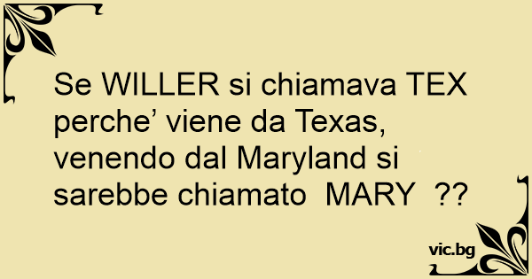 Se WILLER si chiamava TEX perche’ viene da Texas, venendo dal Maryland si sarebbe chiamato MARY ??
