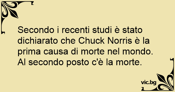 Secondo i recenti studi è stato dichiarato che Chuck Norris è la prima causa di morte nel mondo. Al secondo posto c'è la morte.