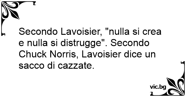 Secondo Lavoisier, "nulla si crea e nulla si distrugge". Secondo Chuck Norris, Lavoisier dice un sacco di саzzате.