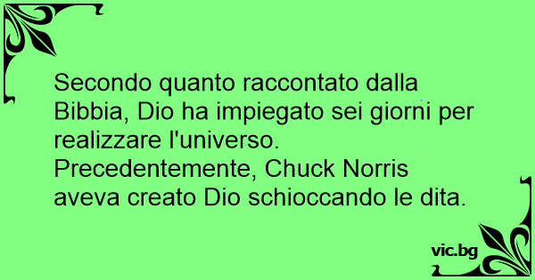 Secondo quanto raccontato dalla Bibbia, Dio ha impiegato sei giorni per realizzare l'universo. Precedentemente, Chuck Norris aveva creato Dio schioccando le dita.