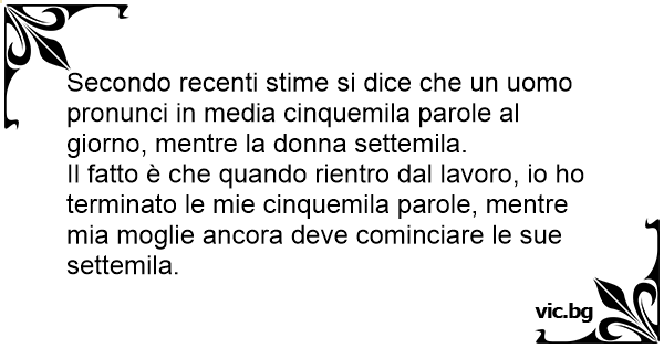 Il fatto è che quando rientro dal lavoro, io hо terminato le mie cinquemila parole, mentre mia moglie ancora deve cominciare le sue settemila.