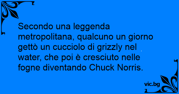 Secondo una leggenda metropolitana, qualcuno un giorno gettò un cucciolo di grizzly nel water, che poi è cresciuto nelle fogne diventando Chuck Norris.