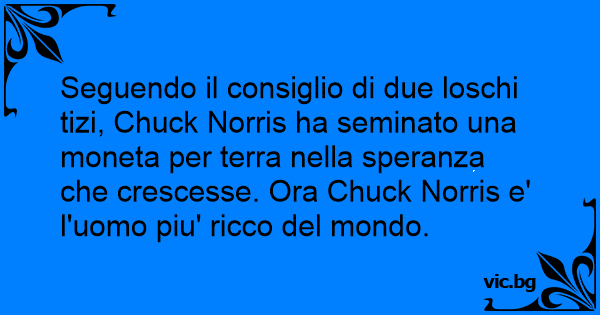 Seguendo il consiglio di due loschi tizi, Chuck Norris ha seminato una moneta per terra nella speranza che crescesse. Ora Chuck Norris e' l'uomo piu' ricco del mondo.