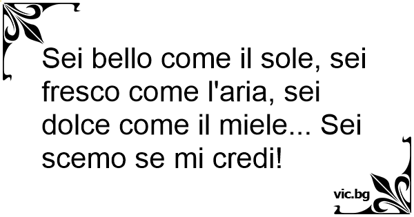 Sei bello come il sole, sei fresco come l'aria, sei dolce come il miele... Sei scemo se mi credi!