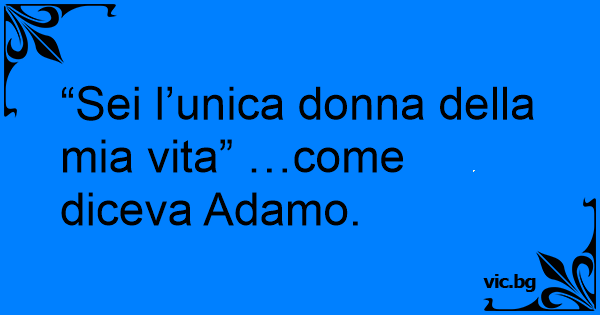 “Sei l’unica donna della mia vita” …come diceva Adamo.