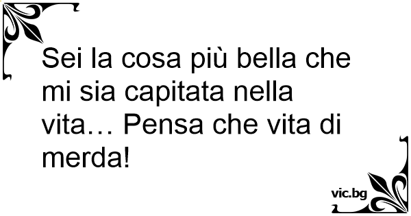 Sei la cosa più bella che mi sia capitata nella vita… Pensa che vita di меrdа!