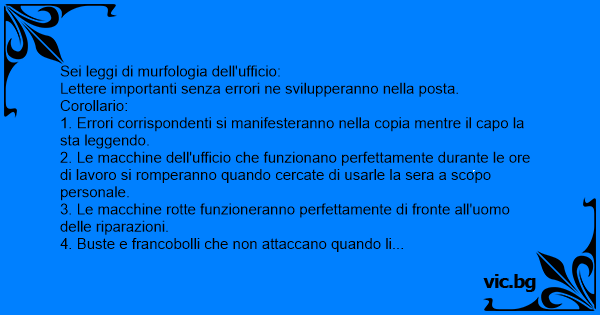 2. Le macchine dell'ufficio che funzionano perfettamente durante le ore di lavoro si romperanno quando cercate di usarle la sera a scopo personale.