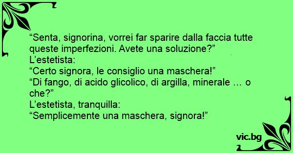 “Senta, signorina, vorrei far sparire dalla faccia tutte queste imperfezioni. Avete una soluzione?”