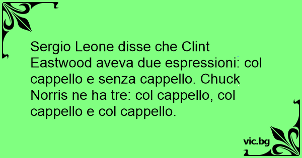 Sergio Leone disse che Clint Eastwood aveva due espressioni: col cappello e senza cappello. Chuck Norris ne ha tre: col cappello, col cappello e col cappello.
