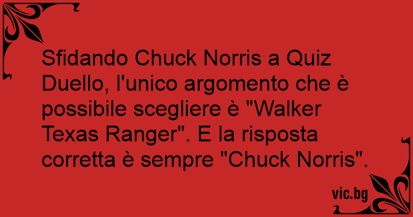 Sfidando Chuck Norris a Quiz Duello, l'unico argomento che è possibile scegliere è "Walker Texas Ranger". E la risposta corretta è sempre "Chuck Norris".