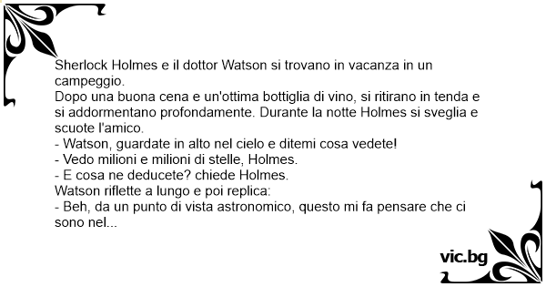 Holmes ed il Dott. Watson decidono di passare un week end in campeggio in una tenda nel mezzo di una foresta. A notte fonda Holmes sveglia il dottore: "Watson, nota niente di strano?? guardi in...
