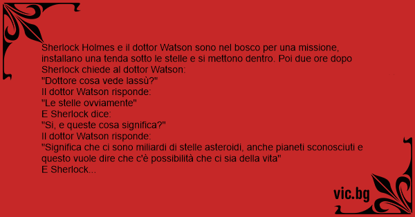 Sherlock Holmes e il dottor Watson sono nel bosco per una missione, installano una tenda sotto le stelle e si mettono dentro. Poi due ore dopo Sherlock chiede al dottor Watson: