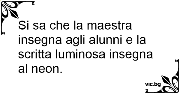 Si sa che la maestra insegna agli alunni e la scritta luminosa insegna al neon.
