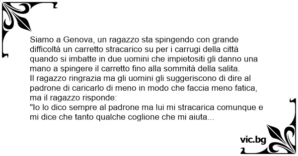 "Io lo dico sempre al padrone ma lui mi stracarica comunque e mi dice che tanto qualche соgliоnе che mi aiuta lo trovo sempre".
