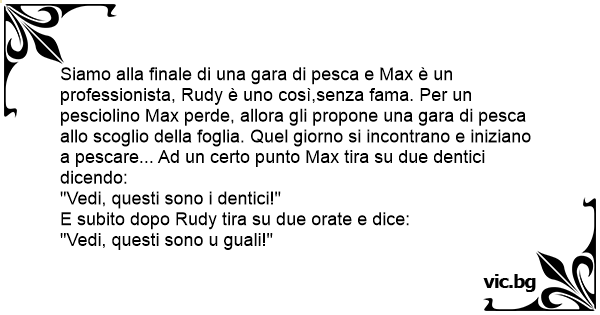 Siamo alla finale di una gara di pesca e Max è un professionista, Rudy è uno così,senza fama. Per un pesciolino Max perde, allora gli propone una gara di pesca allo scoglio della foglia. Quel giorno si incontrano e iniziano a pescare... Ad un certo punto Max tira su due dentici dicendo: