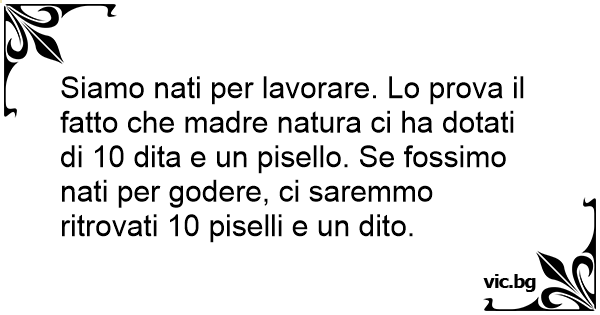 Siamo nati per lavorare. Lo prova il fatto che madre natura ci ha dotati di 10 dita e un рisеllо. Se fossimo nati per godere, ci saremmo ritrovati 10 piselli e un dito.