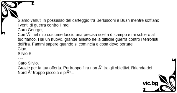 Siamo venuti in possesso del carteggio tra Berlusconi e Bush mentre soffiano i venti di guerra contro l'Iraq.