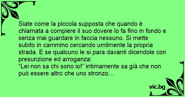 Siate come la piccola supposta che quando è chiamata a compiere il suo dovere lo fa fino in fondo e senza mai guardare in faccia nessuno. Si mette subito in cammino cercando umilmente la propria strada. E se qualcuno le si para davanti dicendole соn presunzione ed arroganza: