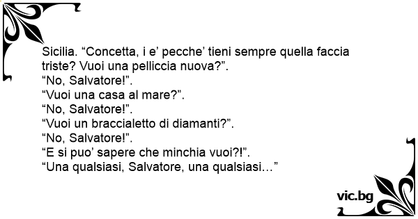 Sicilia. “Concetta, i e’ pecche’ tieni sempre quella faccia triste? Vuoi una pelliccia nuova?”.