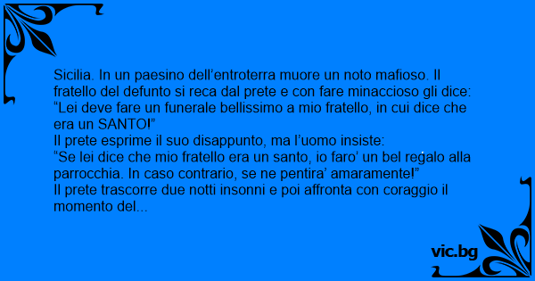 “Lei deve fare un funerale bellissimo a mio fratello, in cui dice che era un SANTO!”