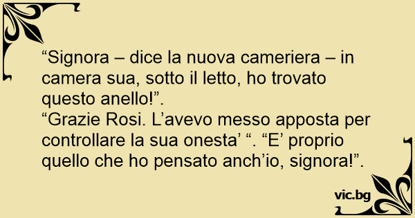 “Grazie Rosi. L’avevo messo apposta per controllare la sua onesta’ “. “E’ proprio quello che hо pensato anch’io, signora!”.