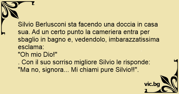 Silvio Berlusconi sta facendo una doccia in casa sua. Ad un certo punto la cameriera entra per sbaglio in bagno e, vedendolo, imbarazzatissima esclama: