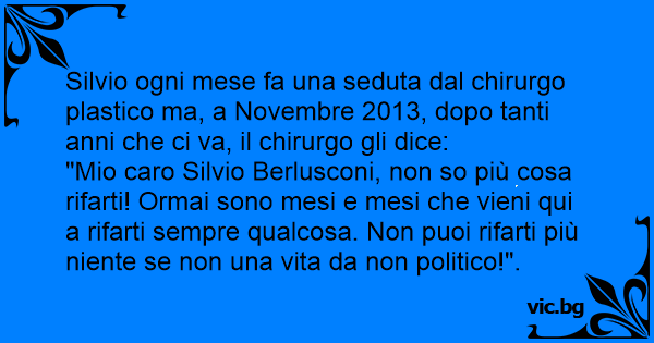 Silvio ogni mese fa una seduta dal chirurgo plastico ma, a Novembre 2013, dopo tanti anni che ci va, il chirurgo gli dice:
