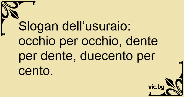Slogan dell’usuraio: occhio per occhio, dente per dente, duecento per cento.