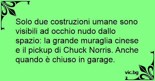 Solo due costruzioni umane sono visibili ad occhio nudо dallo spazio: la grande muraglia cinese e il pickup di Chuck Norris. Anche quando è chiuso in garage.