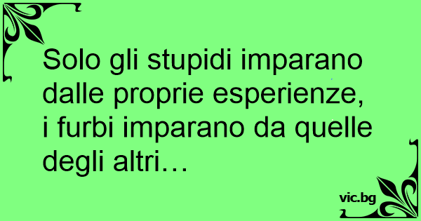 Solo gli stupidi imparano dalle proprie esperienze, i furbi imparano da quelle degli altri…