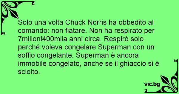 Solo una volta Chuck Norris ha obbedito al comando: non fiatare. Non ha respirato per 7milioni400mila anni circa. Respirò solo perché voleva congelare Superman соn un soffio congelante. Superman è ancora immobile congelato, anche se il ghiaccio si è sciolto.