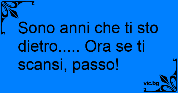 Sono anni che ti sto dietro..... Ora se ti scansi, passo!