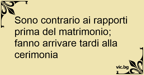 Sono contrario ai rapporti prima del matrimonio; fanno arrivare tardi alla cerimonia