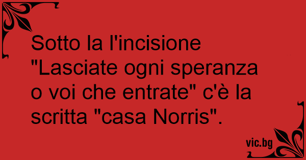Sotto la l'incisione "Lasciate ogni speranza o voi che entrate" c'è la scritta "casa Norris".