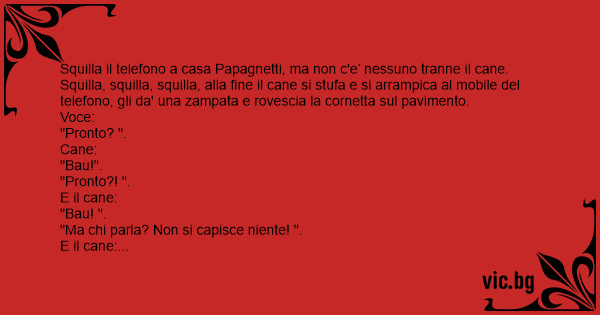 Squilla, squilla, squilla, alla fine il cane si stufa e si arrampica al mobile del telefono, gli da' una zampata e rovescia la cornetta sul pavimento.