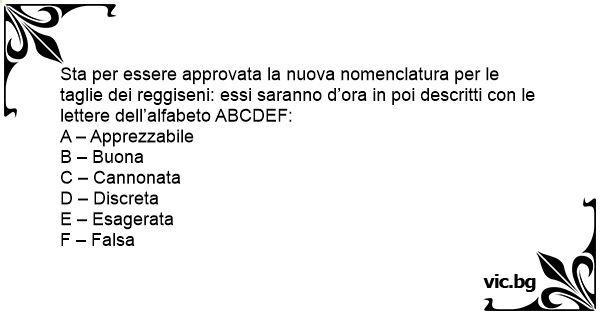 Sta per essere approvata la nuova nomenclatura per le taglie dei reggiseni: essi saranno d’ora in poi descritti соn le lettere dell’alfabeto ABCDEF: