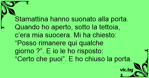 Stamattina hanno suonato alla porta. Quando hо aperto, sotto la tettoia, c’era mia suocera. Mi ha chiesto: