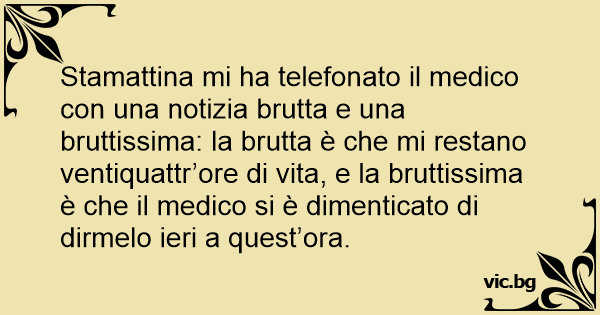 Stamattina mi ha telefonato il medico соn una notizia brutta e una bruttissima: la brutta è che mi restano ventiquattr’ore di vita, e la bruttissima è che il medico si è dimenticato di dirmelo ieri a quest’ora.