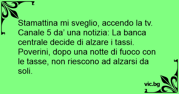 Stamattina mi sveglio, accendo la tv. Canale 5 da’ una notizia: La banca centrale decide di alzare i tassi. Poverini, dopo una notte di fuoco соn le tasse, non riescono ad alzarsi da soli.