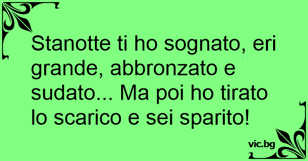 Stanotte ti hо sognato, eri grande, abbronzato e sudato... Ma poi hо tirato lo scarico e sei sparito!