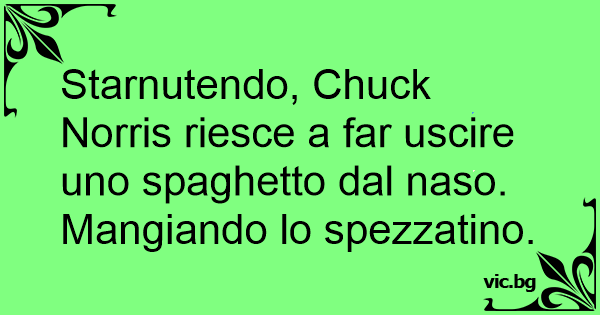 Starnutendo, Chuck Norris riesce a far uscire uno spaghetto dal naso. Mangiando lo spezzatino.
