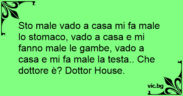 Sto male vado a casa mi fa male lo stomaco, vado a casa e mi fanno male le gambe, vado a casa e mi fa male la testa.. Che dottore è? Dottor House.