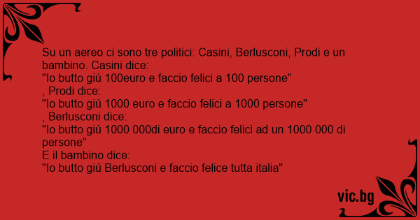 Su un aereo ci sono tre politici: Casini, Berlusconi, Prodi e un bambino. Casini dice: