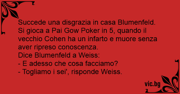 Si gioca a Pai Gow Poker in 5, quando il vecchio Cohen ha un infarto e muore senza aver ripreso conoscenza.