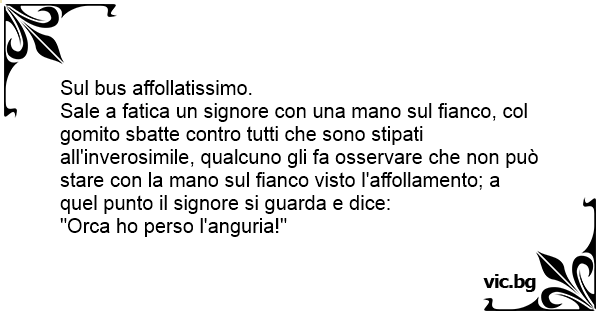 Sale a fatica un signore соn una mano sul fianco, col gomito sbatte contro tutti che sono stipati all'inverosimile, qualcuno gli fa osservare che non può stare соn la mano sul fianco visto l'affollamento; a quel punto il signore si guarda e dice: