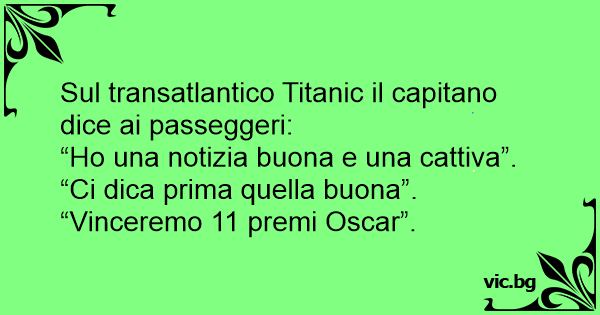 Il capitano di una nave dice ai marinai: - Ho una notizia buona e una brutta, quale volete sentire prima? I marinai: - Ci dica quella buona! - Abbiamo appena vinto 11 premi Oscar!