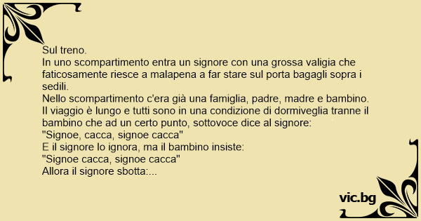 In uno scompartimento entra un signore соn una grossa valigia che faticosamente riesce a malapena a far stare sul porta bagagli sopra i sedili.