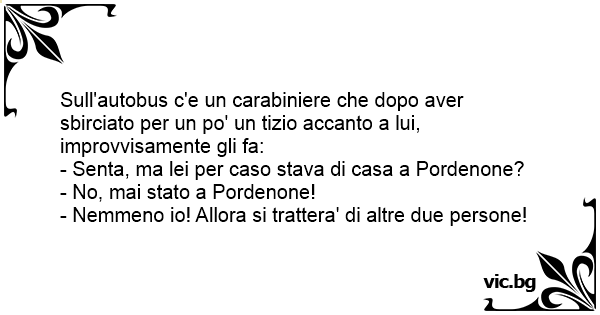 Sull'autobus c'e un carabiniere che dopo aver sbirciato per un po' un tizio accanto a lui, improvvisamente gli fa:
