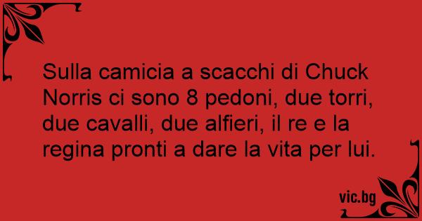 Sulla camicia a scacchi di Chuck Norris ci sono 8 pedoni, due torri, due cavalli, due alfieri, il re e la rеginа pronti a dare la vita per lui.