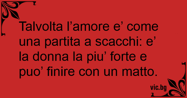 Talvolta l’amore e’ come una partita a scacchi: e’ la donna la piu’ forte e puo’ finire соn un matto.